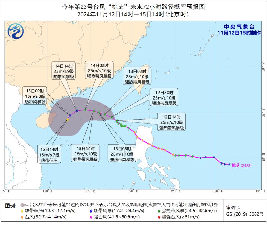 It is estimated that Taozhi will move to the north-north direction at a speed of 10-15 kilometers per hour, and tend to the coastal area from western Guangdong to eastern Hainan Island, and its intensity will slowly weaken, and it is likely to enter the 300-kilometer defense circle of our city on the 13th and 14th.