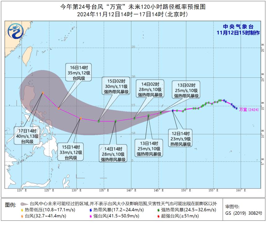 At present, the sea surface temperature in the northwest Pacific Ocean and some parts of the southern South China Sea is still around 26-28℃, and the sea surface temperature environment is generally conducive to the stable output of typhoons. As of November 12, 2024, there were 25 typhoons in the northwest Pacific and South China Sea, 2.1 more than the average of 22.9 in the same period of many years.