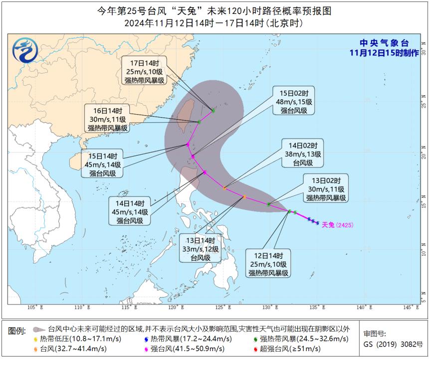 This year’s 25th typhoon "Tiantu" was formed in the Pacific Northwest early this morning (12th). At 14: 00 on 12th, it was centered on the ocean about 1,190 kilometers east of Manila, Philippines (more than 2,000 kilometers away from our city). It is predicted that Tiantu will move rapidly to the north-west direction at a speed of about 30 kilometers per hour, and its intensity will gradually increase, and it will tend to the waters near bashi channel.