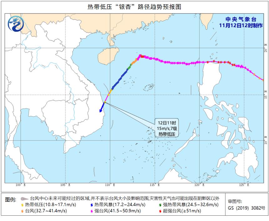 After the 22nd typhoon "Ginkgo biloba" left us this year, it is located off the coast of eastern Vietnam at the level of tropical depression, and will soon stop numbering. It is expected that the tropical depression will continue to move to the south-west direction at a speed of about 15 kilometers per hour, and will land in the coastal area of eastern Vietnam, and gradually weaken and disappear after landing.